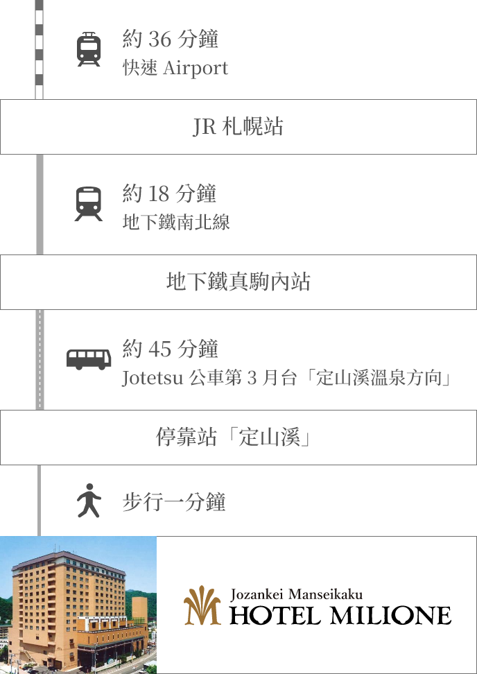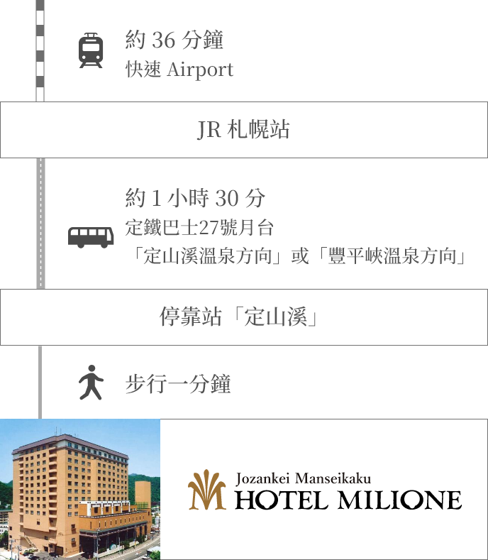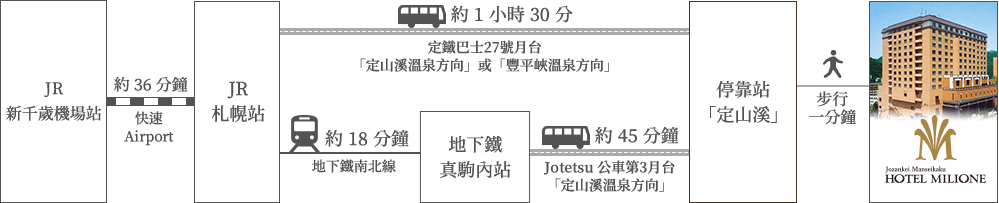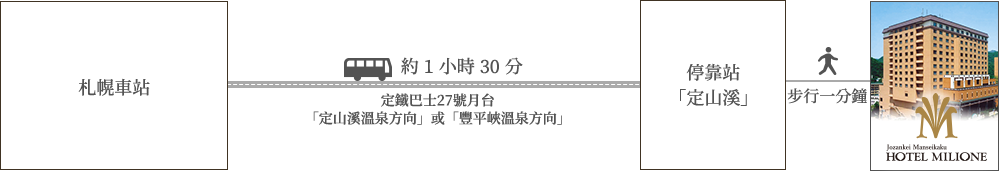 *定山溪無直達 JR 路線可前往。請由札幌站搭乘公車前往。